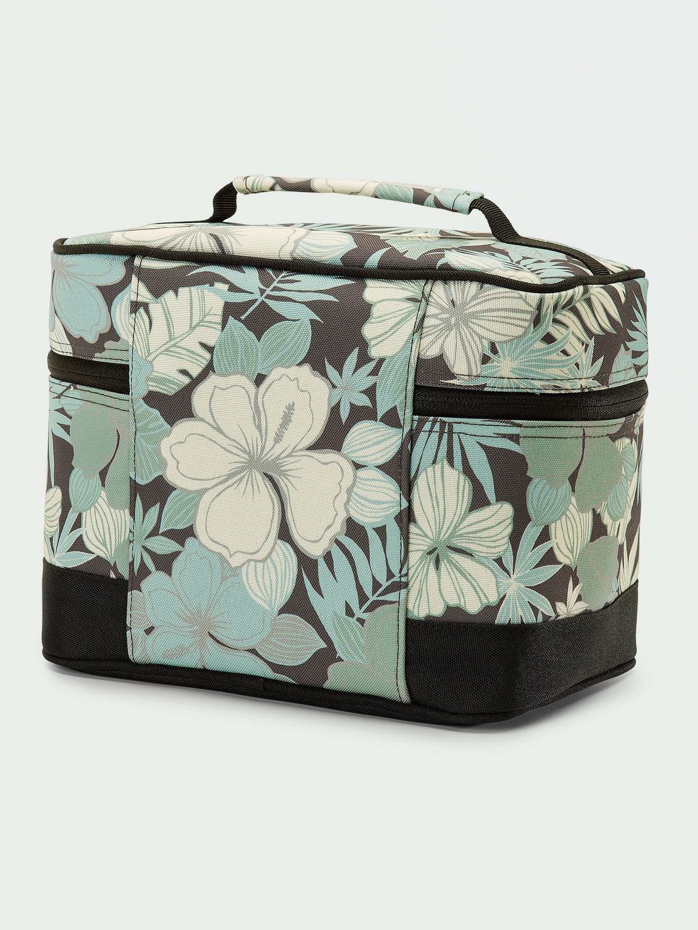 Keep your essentials organized with the Patch Attack Deluxe Makeup case. This large makeup case features a small internal case, custom all-over print with contrast black panel, zip mesh pocket on the inside lid with a removable mirror, and elasticated mesh slip-in pocket on the back wall. The Volcom woven and PU patch with contrast merrow edge stitching adds a touch of sophistication.