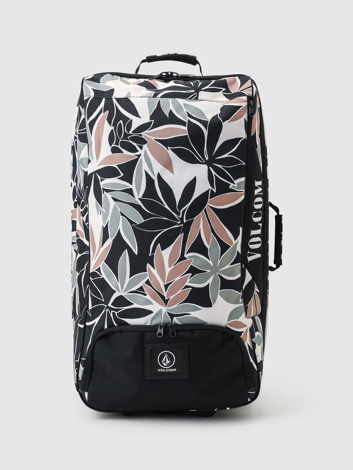 This sage green, custom-printed Volcom wheelie luggage marries wanderlust and style. A spacious 84L interior features thoughtful compartments, while embroidered patches and contrast stitching make it a first-class upgrade for your jet-setting adventures.